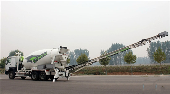 中集凌宇在該產(chǎn)品的研發(fā)過程中,與國(guó)外廠家聯(lián)合,借鑒國(guó)外技術(shù),并充分結(jié)合*國(guó)情,把國(guó)內(nèi)混凝土運(yùn)輸狀態(tài)以及施工情況進(jìn)行深入分析,對(duì)原有混凝土運(yùn)輸、施工產(chǎn)品進(jìn)行了創(chuàng)新性突破。這款皮帶輸送式自施工攪拌車的原理是將皮帶輸送設(shè)備與攪拌車結(jié)合,多段皮帶輸送裝置折疊或伸縮組合成輸送臂,將混凝土輸送至施工地。